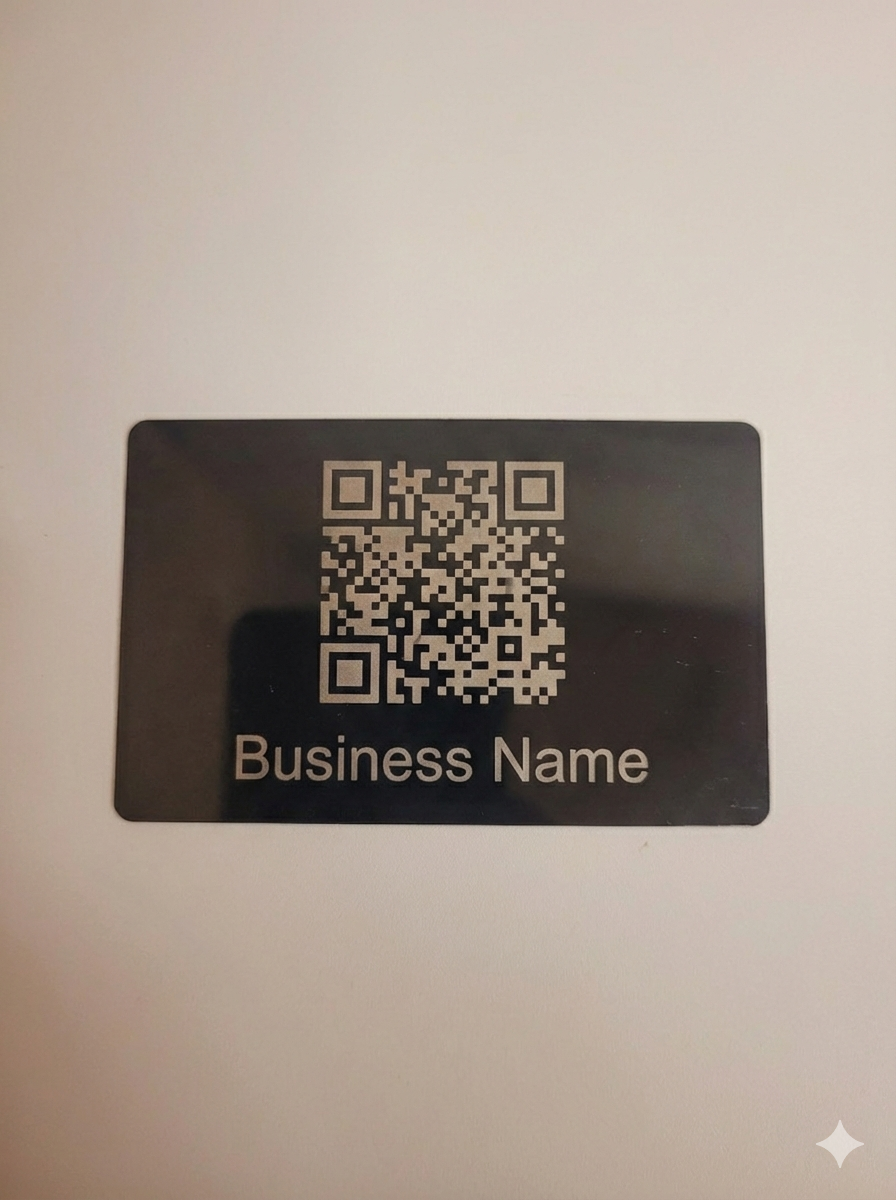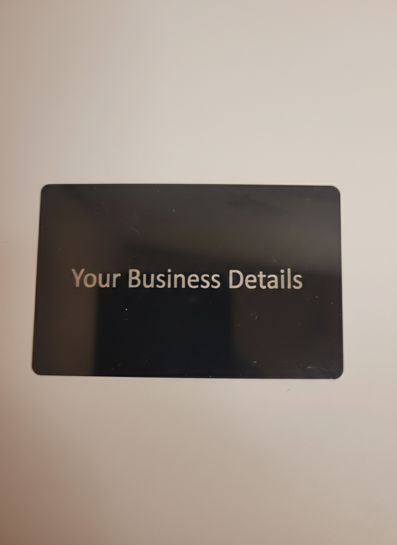 These sleek, modern cards are designed to stand out. Crafted from durable black-coated metal and professionally laser engraved to reveal a stunning metallic contrast, they offer a high-end alternative to traditional paper business cards.