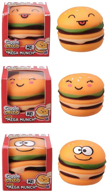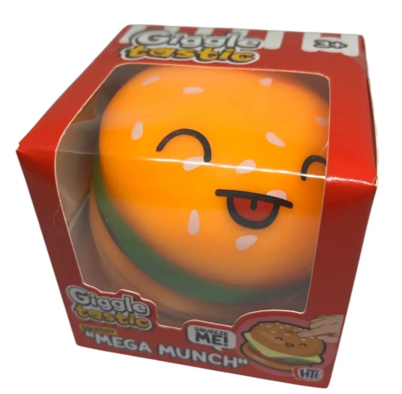 Bring big smiles and even bigger squeezes with the Giggle Tastic Mega Munch Squishy! This adorable burger-themed squishy features a cute kawaii-style face and a super soft, slow-rising texture that’s perfect for squeezing, squishing, and stress relief.